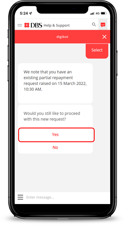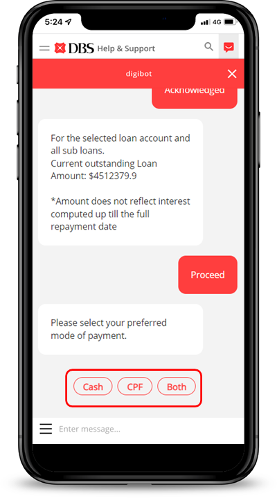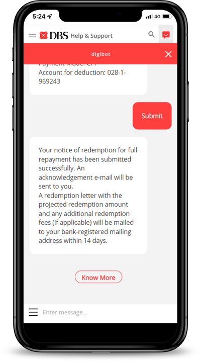 Submit or check your application status of your application to make repayment to pay off your mortgage via our digibot.