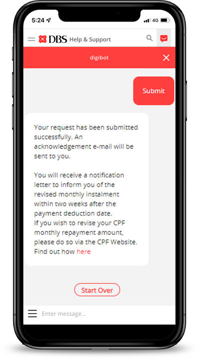 - Upon successful deduction of the partial repayment amount, you will receive a notification letter to inform you of the revised monthly instalment within 2 weeks after the payment deduction date.
