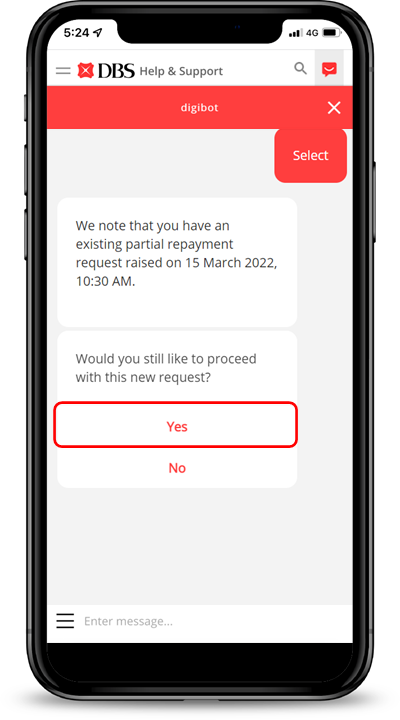 Submit your application or check your application status to make an ad-hoc repayment to reduce your outstanding loan balance via our digibot.